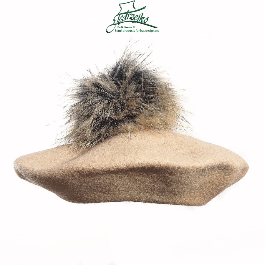 Cute wool BERETS with fluffy POMPOM (raccoon dog fur)!