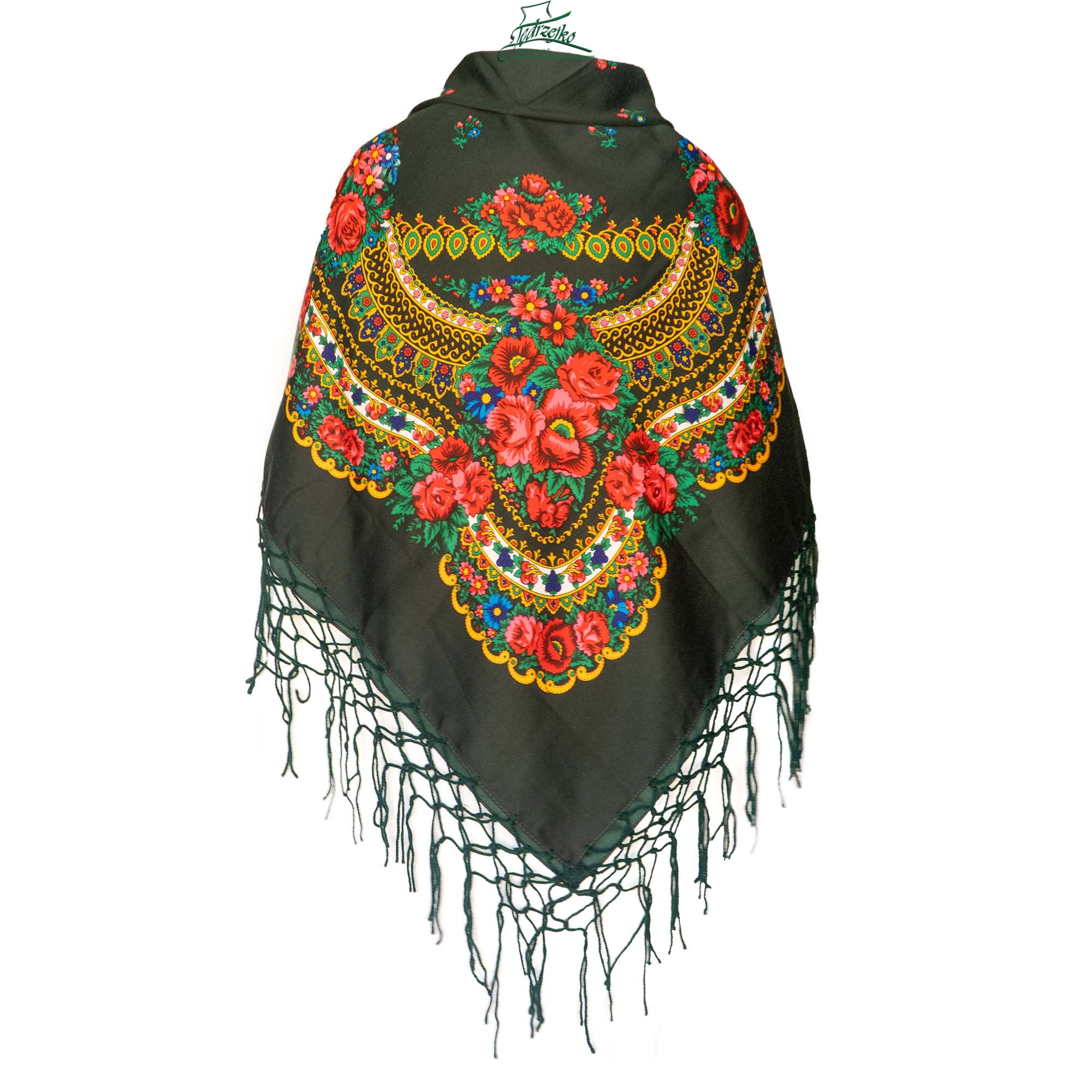 Beautiful cotton folk scarf with a screen-printed folk design surrounded by fringe.
