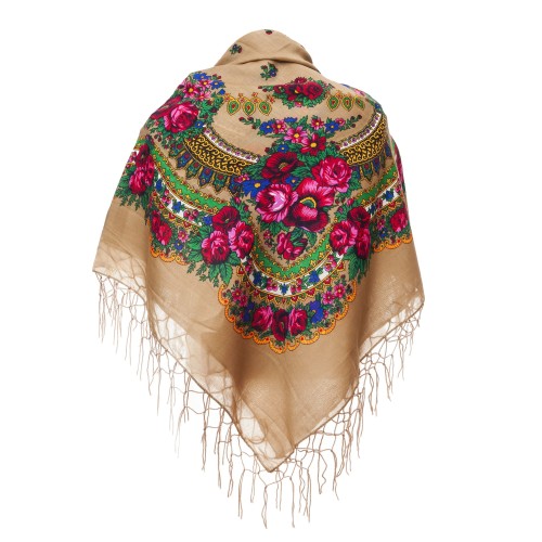 Polish Folk Scarf - Coffe with milk